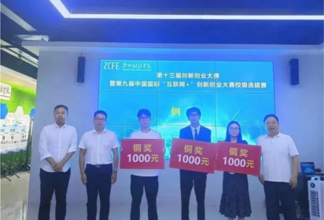 王晓妍(右二)参加校十三届“互联网+”大赛荣获铜奖
