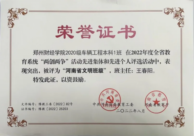 砥砺初心,从担任班级团支书那一刻起,她牢记肩上责任,争当排头兵,在班风、学风上凝聚力量,带领班级斩获校级“优秀团支部”“河南省文明班级”等多项荣誉称号。