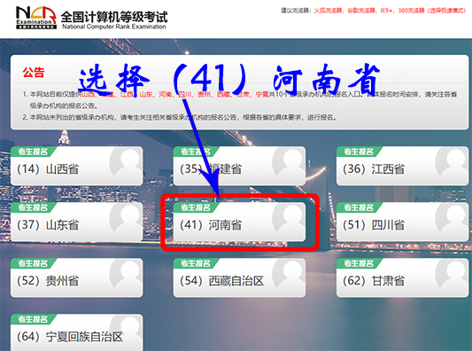 具体报名开始时间为:2020年12月29日7:00,报名结束时间为:2021年1月8日8:00,考生登录https://ncre-bm.neea.cn,按照系统提示选择河南考生报名,登录系统、阅读报名协议,填写基本信息、选择报考考点(410091必赢线路检测中心)、选择报考科目、上传照片、网上支付完成在线报名。